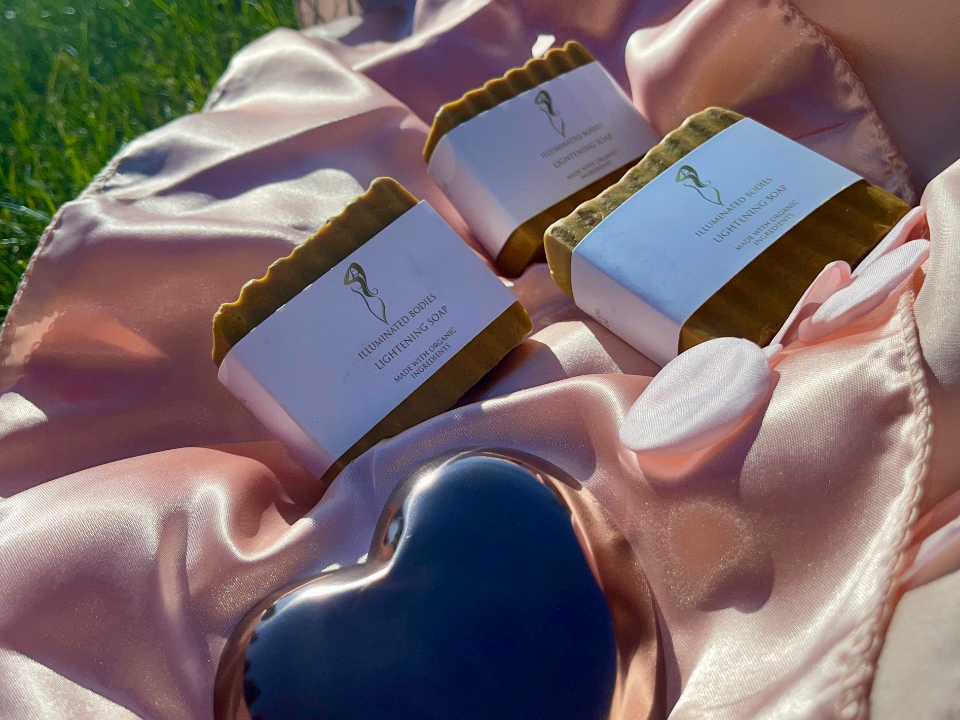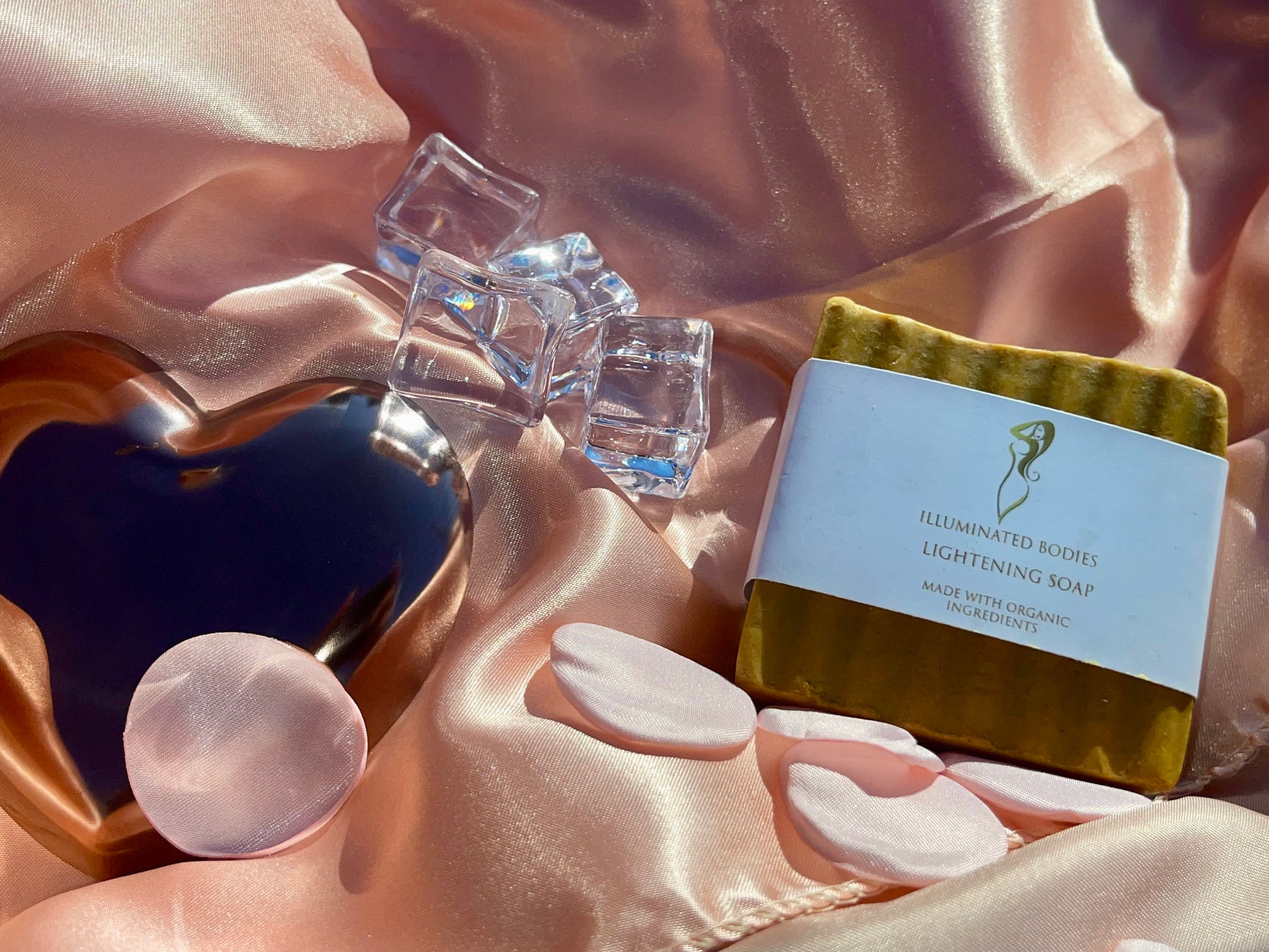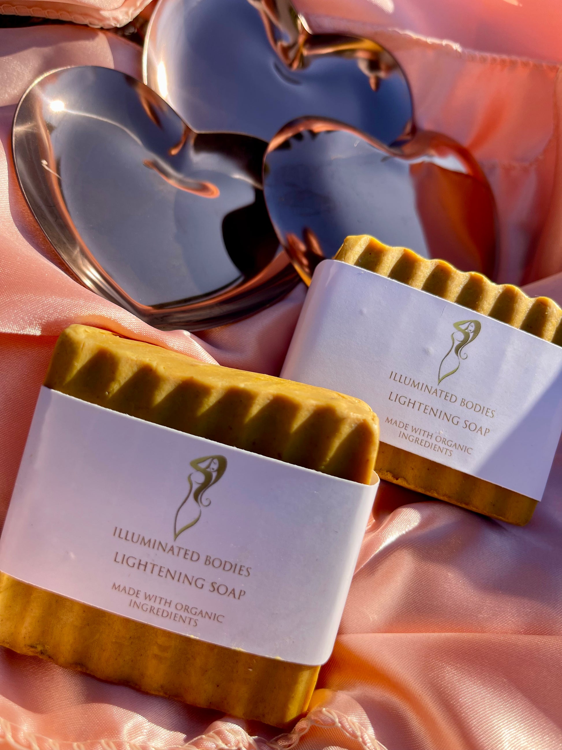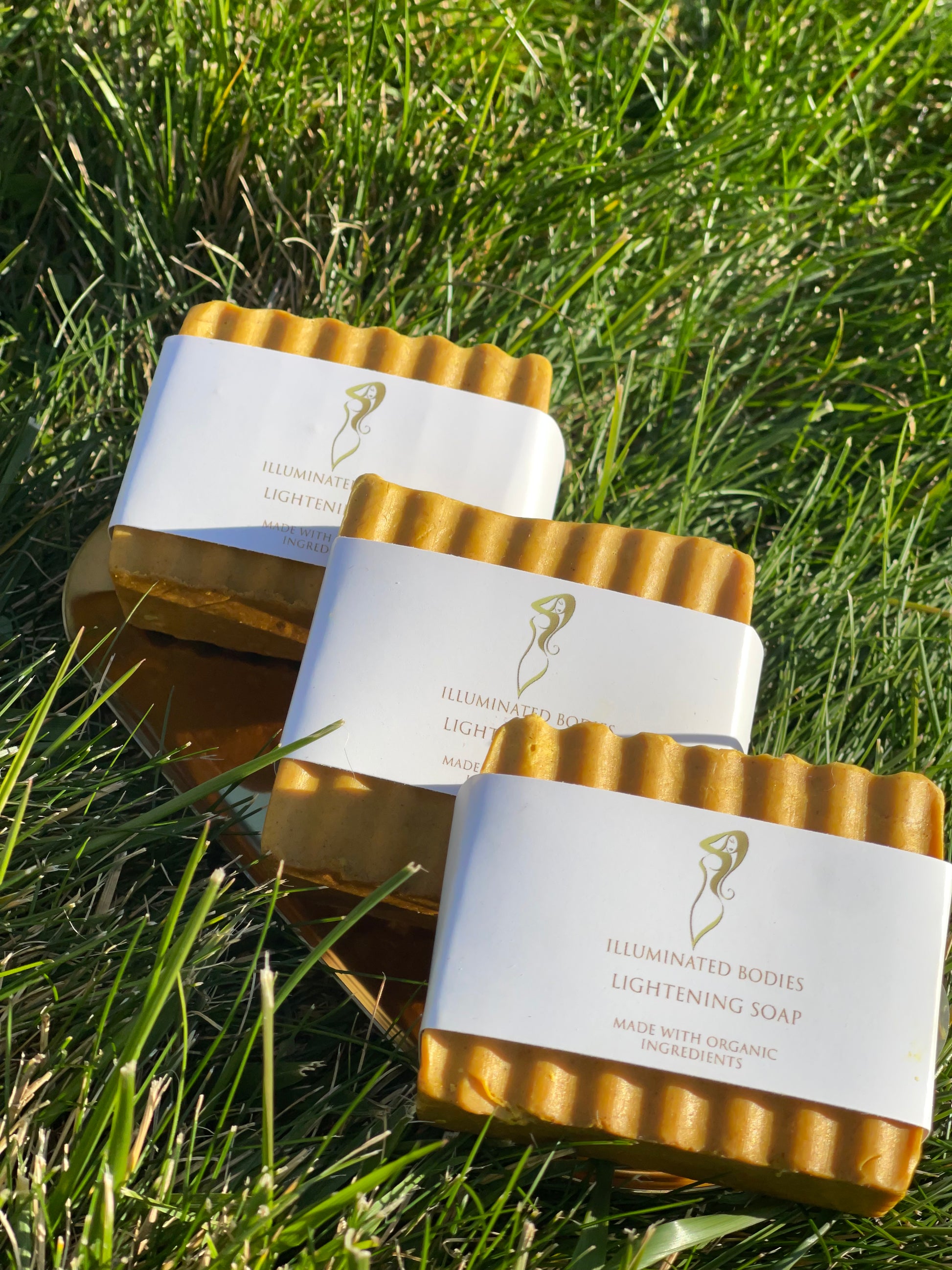Introducing our Lightening Soap, a premium skincare product that is formulated with all-natural ingredients to provide gentle yet effective cleansing for your skin. This soap is enriched with turmeric, honey, lemon juice, olive oil, and aloe vera, which work together to improve hyperpigmentation, reduce acne breakouts, fade dark spots, and leave your skin feeling moisturized. Our Lightening soap is perfect for those with sensitive skin, as it is formulated with gentle, natural ingredients that won't cause irritation or dryness. With regular use, this soap will leave your skin looking and feeling healthier, brighter, and more radiant. This Lightening Soap is available in +4.5 oz.